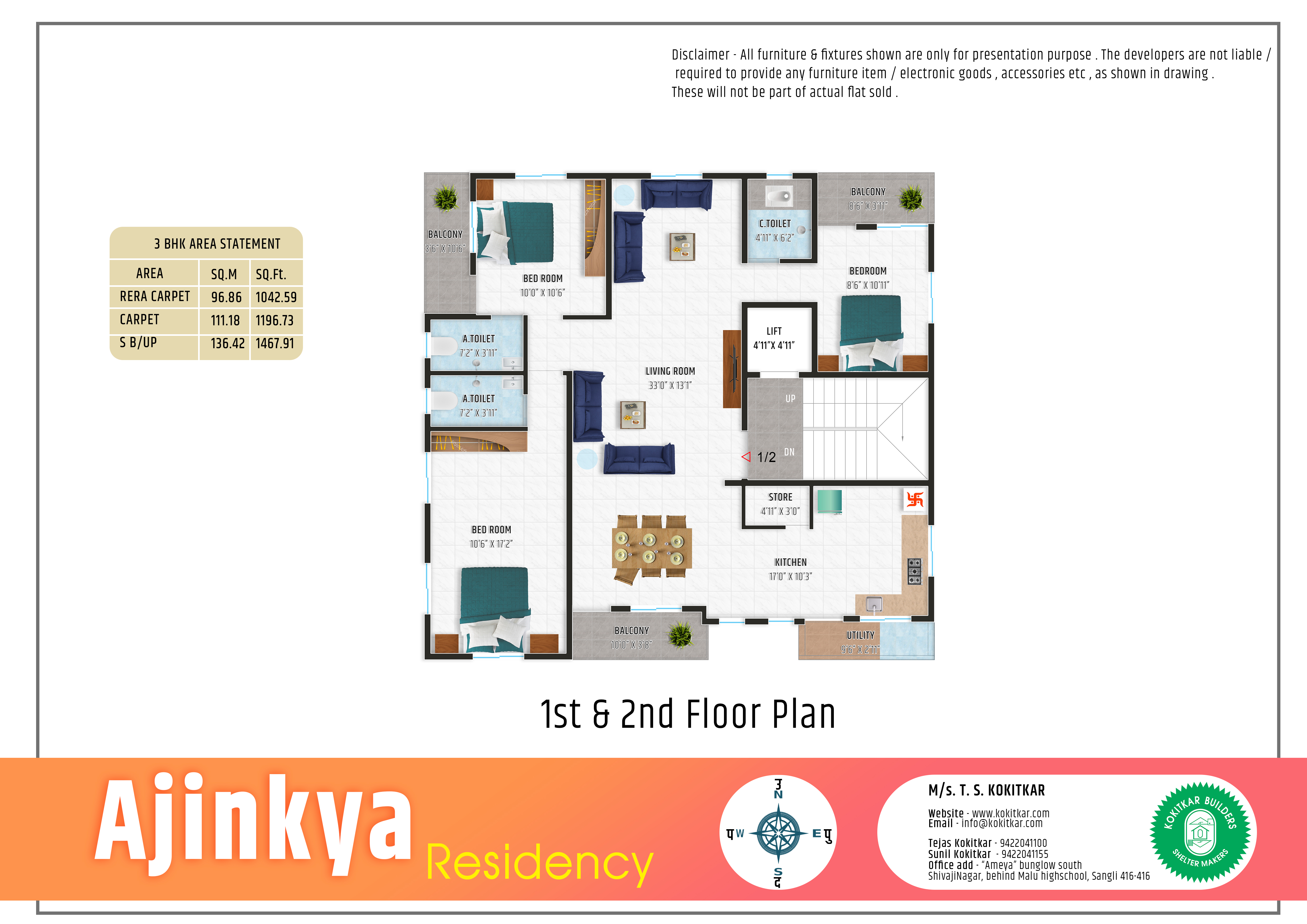 “Ajinkya Residency” S.No. 149/2/3/21, Tuljainagar, Behind Veershaiy Mali Mangal Karyalay, near Podar International school, Kupwad, Sangli.